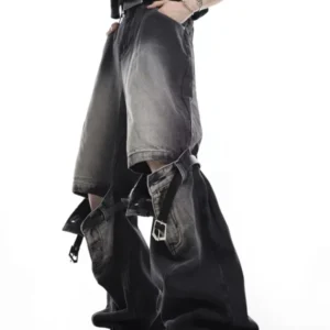 ●Features: Button, Pocket, Zipper, Denim, High Waist, Wide Leg, Fashionable